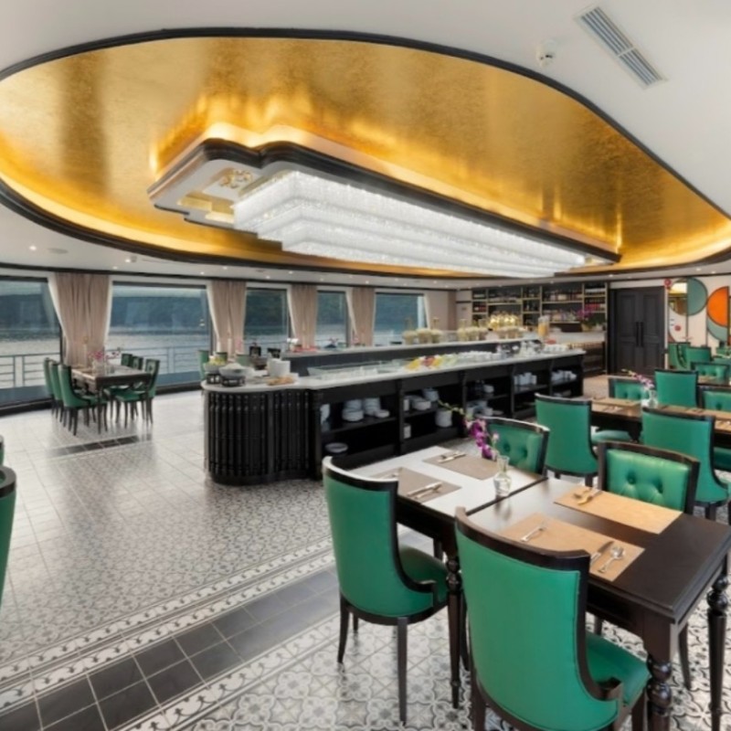 09:30: Thưởng thức bữa brunch buffet (bữa sáng – trưa) tại phòng ăn trong khi du thuyền quay trở lại bến chính. Thanh toán hóa đơn tại quầy lễ tân.