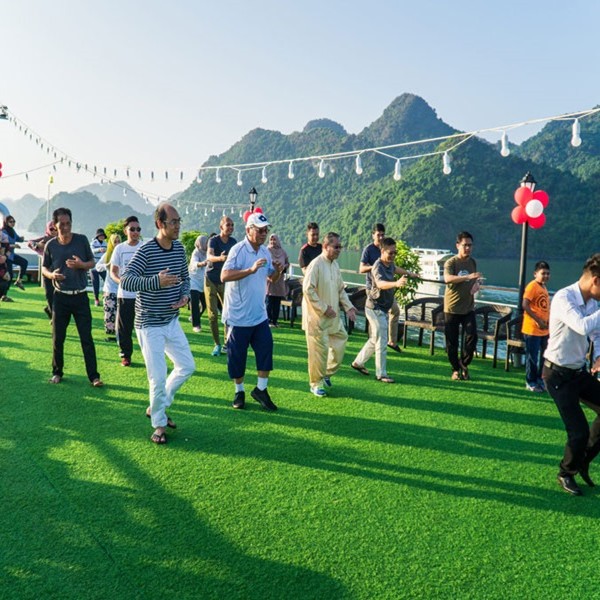 15:30: Tham quan hang Sáng và hang Tối – nơi nổi tiếng với vẻ đẹp nguyên sơ và khung cảnh thơ mộng của vịnh Lan Hạ. Bạn có thể chụp ảnh, chèo thuyền tre hoặc bơi lội để khám phá vẻ đẹp tự nhiên của nơi đây. Sau đó, khách có thể tắm biển hoặc thư giãn trong bể sục jacuzzi trên du thuyền.