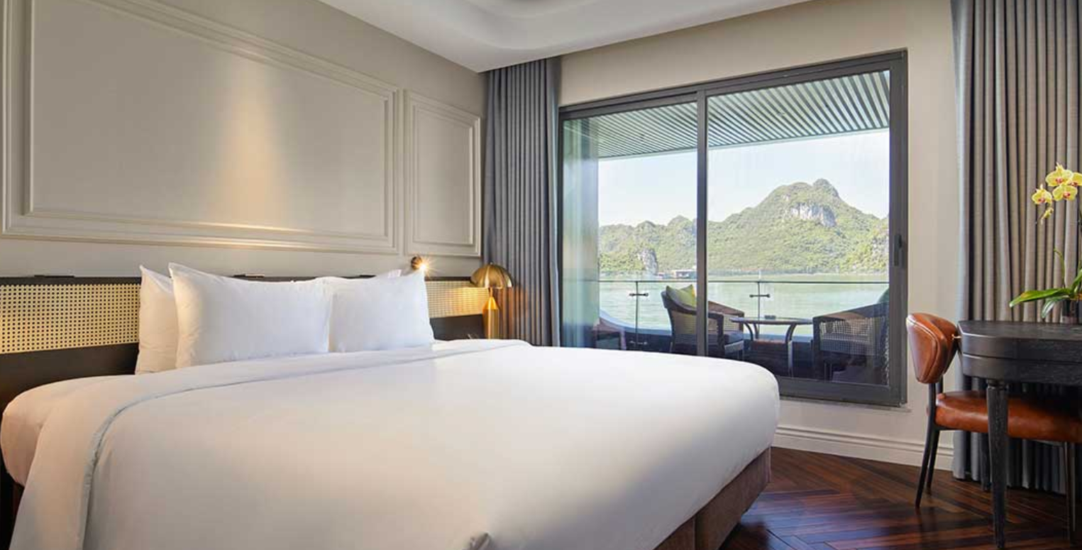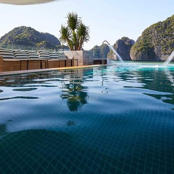 - Phòng nghỉ trên du thuyền sang trọng và bể bơi dát vàng