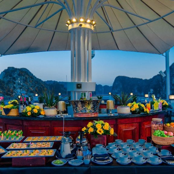 08:30: Du khách sẽ thưởng thức bữa sáng trên du thuyền trong khi du thuyền quay về cảng.
