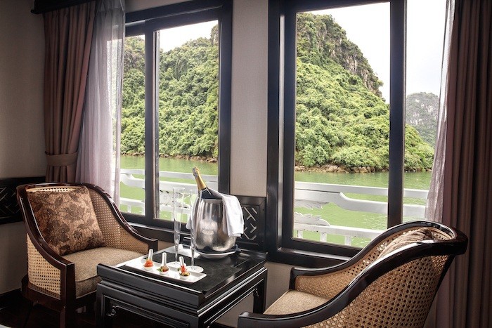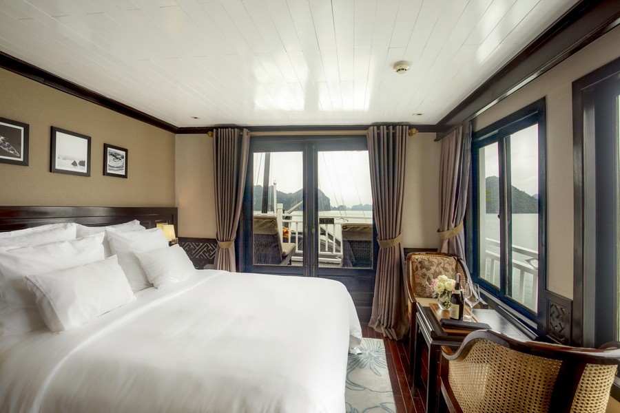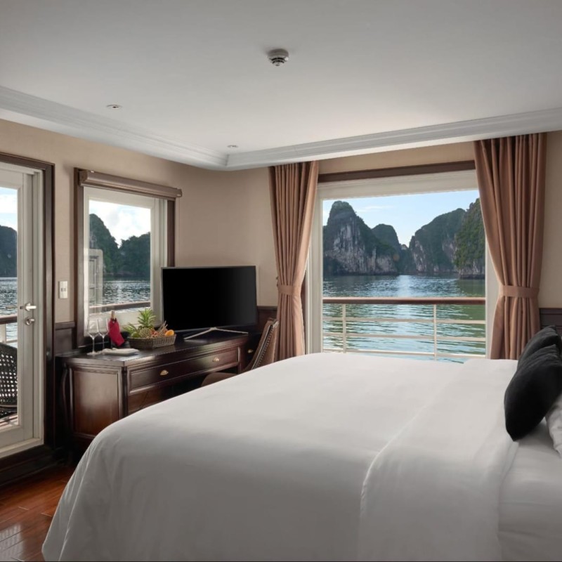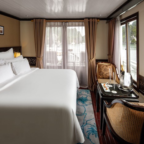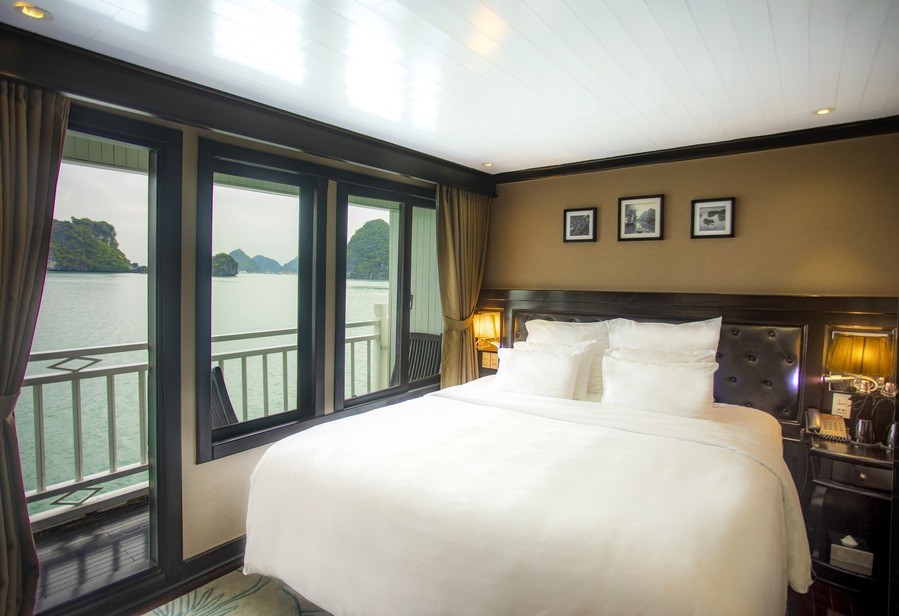• Phòng ngủ đêm sang trọng trên tàu (có điều hòa) dành cho 2 người lớn