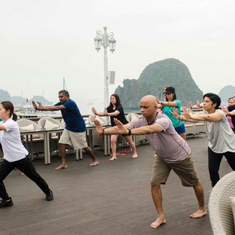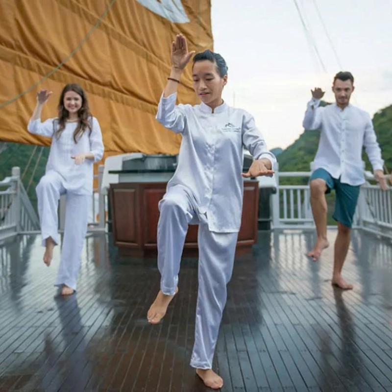 06:30 Chào buổi sáng trên Du thuyền Paradise Sails với bài tập Thái cực quyền trên sundeck.